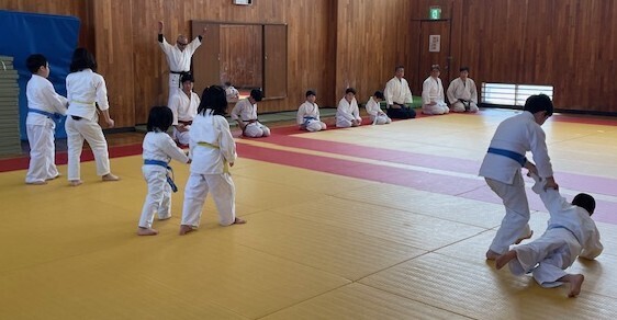 ★吹上一般部まずは、マットの上で前方回転受け身を練習しました。その後は単独の終末動作(一)POINT→足の動作(ライン、向き、すり足など)。技は、正面打ち肘締め(一)、肘持ち肘締め(一)、正面打ち小手返し(二)、片手持ち小手返し(二) POINT→ ①流し方 ②投げ方